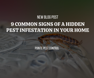Pests are masters of hiding. By the time you actually see one crawling across your floor or wall, there’s a strong chance many more are already living in hidden areas of your home. From rodents in your walls to insects behind cabinets and appliances, infestations often develop quietly. Unfortunately, waiting until pests are visible can lead to serious consequences—property damage, contamination, and even health risks. The good news is that pests almost always leave clues. If you know what to look for, you can catch the problem early and avoid a much bigger issue. In this guide, we’ll walk you through 9 common signs of a hidden pest infestation and explain when it’s time to call Pointe Pest Control for professional help. 1. Unexplained Droppings Around Your Home One of the earliest and most noticeable signs of pests is droppings. What to look for: Small, dark pellets (commonly from mice